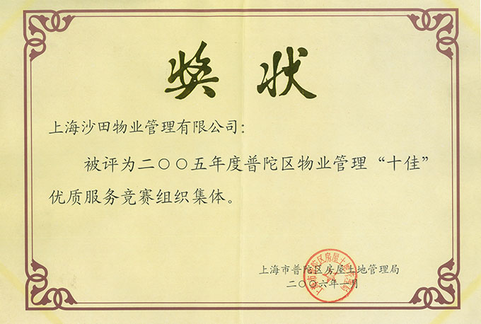 2005年度普陀區(qū)物業(yè)管理“十佳”優(yōu)質(zhì)服務(wù)競(jìng)賽組織集體