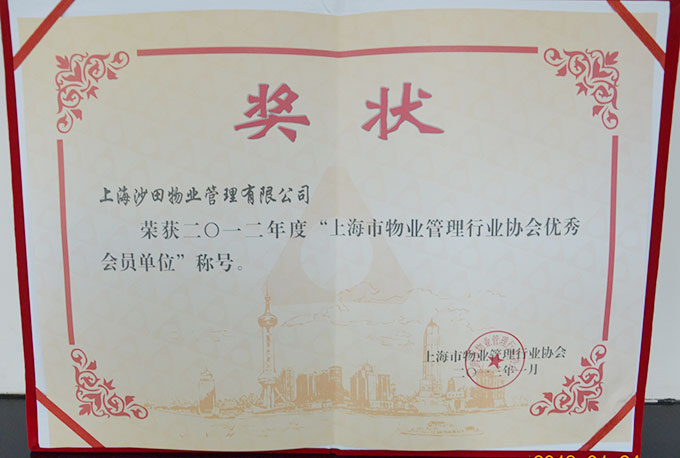 2012年度上海物業(yè)管理行業(yè)協(xié)會優(yōu)秀單位