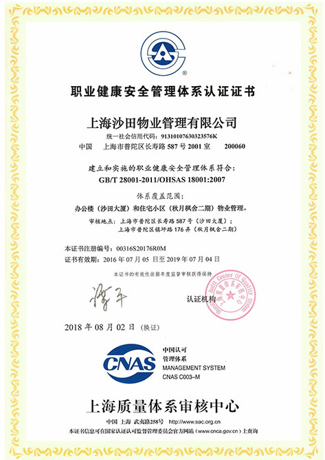 職業(yè)健康認(rèn)證證書2018