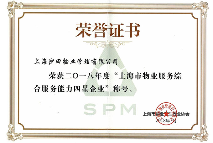 2018年度上海市物業(yè)綜合服務(wù)四星企業(yè)