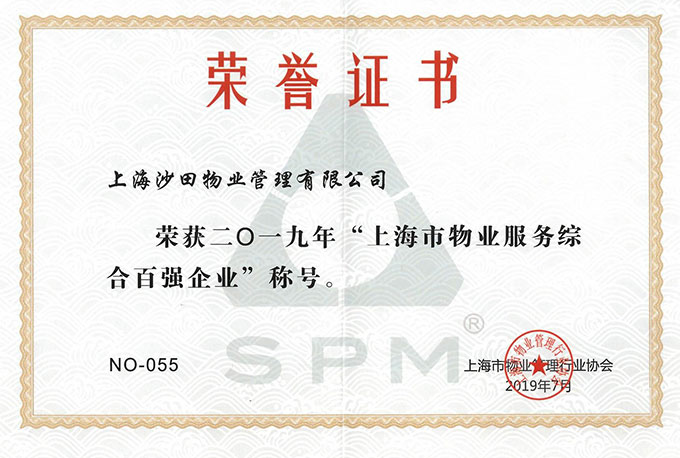 2019.7上海市物業(yè)服務(wù)綜合百強(qiáng)企業(yè)稱號