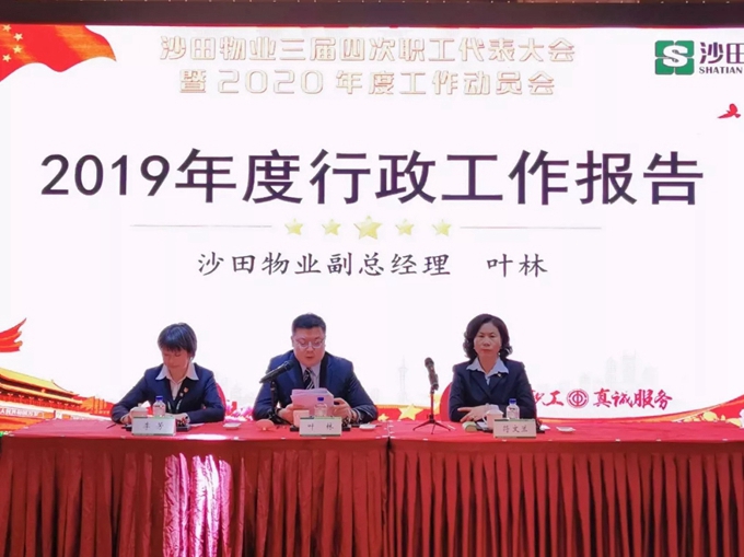2020年1月16日,上海沙田物業(yè)管理有限公司召開第三屆第四次職工代表大會,101名職工代表參加本次會議,沙田物業(yè)副總經(jīng)理葉林、工會主席李芳、總經(jīng)理助理符文蘭主持會議。