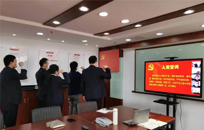 2020年3月26日,沙田物業(yè)黨支部在黨建活動(dòng)室開(kāi)展“將初心落在行動(dòng)上、把使命擔(dān)在肩膀上”主題黨日活動(dòng),7名黨員、1名預(yù)備黨員和2名積極分子,共10人參加此次主題黨日活動(dòng),其中6人在會(huì)議室,4人通過(guò)網(wǎng)絡(luò)視頻連線(xiàn)參會(huì)。黨支部書(shū)記趙小鳳同志帶領(lǐng)大家重溫入黨誓言,3位黨員同志也通過(guò)視頻在各自的工作崗位上再次宣誓。在此防疫工作仍十分關(guān)鍵的時(shí)刻,各位黨員同志在重溫入黨誓言后,在經(jīng)歷了一個(gè)多月的防疫工作疲憊的身心,又重新煥發(fā)出高昂的斗志。