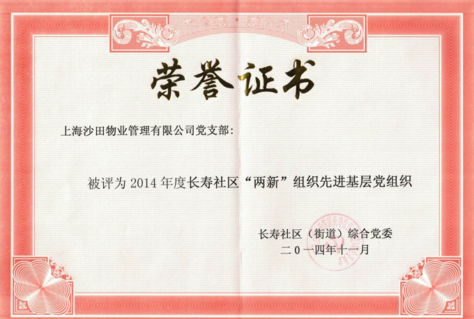 被評(píng)為2014年長(zhǎng)壽社區(qū)兩新組織先進(jìn)基層黨組織